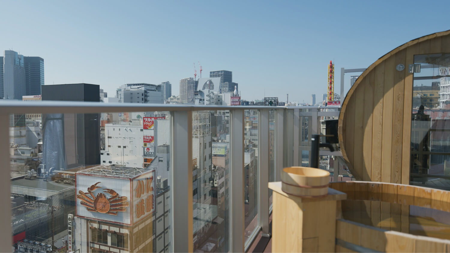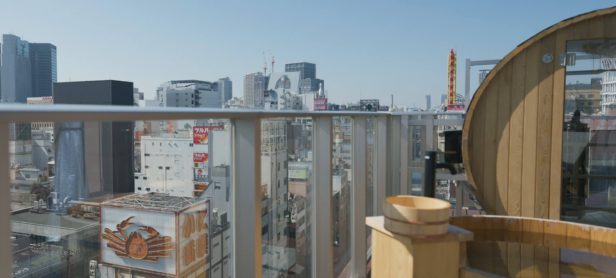 日本橋駅から徒歩3分、道頓堀川沿いのビル屋上から難波・ミナミの眺めをひとりじめできる道頓堀サウナ。