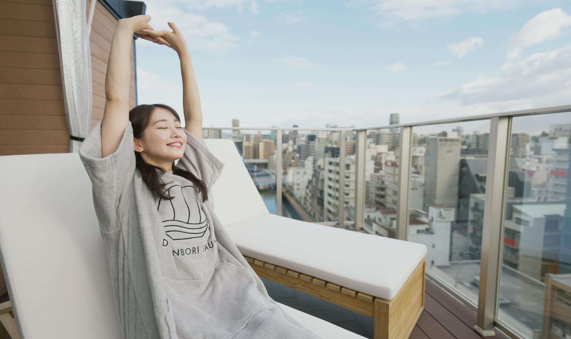 屋上サウナで大阪ならではの景色を楽しみながら旅の疲れを癒やしてください。